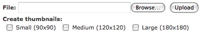 First click “Browse” and locate on your local machine the file or image you wish to place on the web site. Select the file and click OK, then click the “upload” button to upload the file. If the image you are upload is a large image, select a “Create Thumbnail” option to have the system automatically resize the image to a “web safe” size.