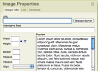 We have added a “Browse Server” button to make it easy to upload and locate pictures that are on the web server. Once you click this button, a new window will pop up with a “File Browser”. The file browser will show all the files that have been uploaded to the web server that can be placed into your content. All images must be on the web server.