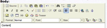 When editing content, the system will display a mini-HTML editor for the body of the content. The mini-editor is a low-end featured HTML editor that is similar Dreamweaver or Word for easier creation of HTML pages.